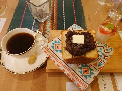 東西線の門前仲町駅から7分ほど、牡丹町通り沿いにあります。3階建ての1階、ガラスの扉の外観です。店内は、テーブルが6つありました。明るくてきれいです。アットホームな雰囲気が漂います。コーヒーと小倉トースト(セットで1050円)を注文しました。コーヒーはバランスいいです。トーストは焼き立てもっちり、あんこと有塩バターが乗っていました。パンと餡子とバターがよく合います。すももジャムが乗った豆乳ヨーグルトも付きます。美味しかったです。他には、各種ドリンク、シナモントースト、手作りワッフルなどがありました。豆乳ヨーグルト買って帰りました。 |
