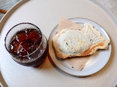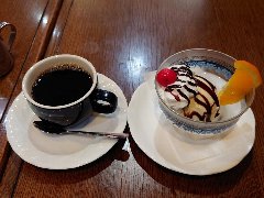 本所吾妻橋駅から南に6、7分、区役所通りの1本西側の路地にあります。2階建ての1階です。レンガの外壁アーチ型の窓が特徴的です。店内は、カウンター席が4つ、テーブルが5つありました。レトロな雰囲気、ちょっとスナック感があります。とあるゲームの聖地になってるらしいです。女将は気さくな方です。喋り過ぎでなかなか注文が進まなくて見てると面白いです。ブレンドコーヒー(400円)とアイスクリーム(500円)を注文しました。コーヒーはハンドドリップで淹れます。コーヒーは飲みやすかったです。バニラアイスはやや濃厚でした。美味しかったです。他には、各種ドリンク、トースト、サンドウィッチ、パフェなどがありました。けっこう混んでいました。 |