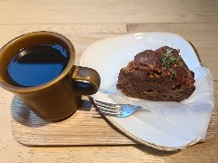 門前仲町駅から西に5、6分、永代通り沿い、永代橋の近くにあります。マンションの1階、赤いテントが目印です。店内は、外向きのカウンター席が3つ、テーブルが4つありました。明るくてきれい、ウッディで洒落た内装です。天井は高いですが、小ぢんまりしています。ブレンドコーヒー(500円)、おやつプレートのにっこりプレート(2種類のおやつ)(700円、セットでコーヒーが300円)を注文しました。プレートは、5種類のおやつから2つ選びます。ベイクドチーズケーキと栗のモンブランプリンにしました。ブレンドはハンドドリップ、大きめのカップです。丸山珈琲の豆を使っているそうです。美味しいです。手作り感のあるケーキも美味しいです。他には、各種コーヒー、フレンチトースト、食事系のプレートメニューが人気があるようです。土日祝は朝8時から営業しているそうです。 |