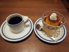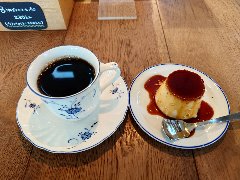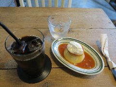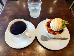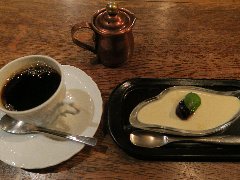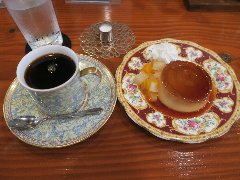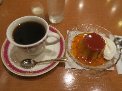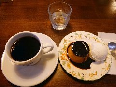 ![]() | 国立駅南口から2分ほど、駅前から延びる大学通りから狭い路地に入った所にあります。洋風なレトロな外観です。店内は、テーブルが8つ、2階にもテーブルが多数あるようです。家具や装飾などは古い感じです。落ち着いた雰囲気ですがちょっと雑多です。ブレンドコーヒーとカスタードプディング(セットで800円)を注文しました。メニューにはプティングと書いてありました。コーヒーは濃いめコクがありました。プリンは、すが入りまくりで大きいです。カラメルソースがたっぷり掛かっていました。昔ながらの味わいで柔らかくも硬くもなく丁度よかったです。美味しかったです。他には、各種ドリンク、食事からデザートまでメニューは多かったです。 |
