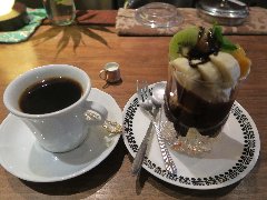 ![]() | 京王八王子駅から4、5分、国道20号の八王子駅の交差点にあります。ビルの2階です。店内は、カウンター席が9つ、テーブルは5つありました。やや薄暗く落ち着いた雰囲気です。カウンターとかかっこいいのですが何故か一部撮禁です。ストロングブレンドと珈琲パフェ(セットで1230円)を注文しました。コーヒーは炭火焙煎、ハンドドリップで淹れます。コクがあってスッキリとしてました。パフェは、バニラアイス、生クリーム、コーヒーゼリーが入っていました。ゼリーはコーヒー感が強めです。美味しかったです。他には、各種ドリンク、クリームあんみつ、神戸チーズケーキなどがありました。16時で閉店です。 |