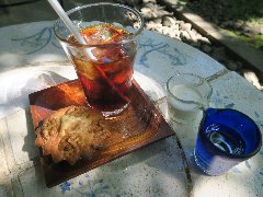 曼珠苑 | 喫茶 | 東京都調布市深大寺元町 | ★ (2017.4.28) | 普通 | ![]() | 調布駅から2kmほど、深大寺の近くにあります。周りは緑の濃いところです。和風な一軒家です。店内は、テーブルが4つ、外の軒下にテーブルが4つありました。大きな窓からは緑が見えます。落ち着いた雰囲気です。入り口付近は、服や陶器、小物など雑貨が並んでました。水立てアイスコーヒー(400円)、カップケーキ(150円)を注文しました。コーヒーはすっきりとした味わいで美味しいです。他には、コーヒー、紅茶、おしるこ、いそべもち、アイスクリームなどがありました。テラス席は緑に囲まれて木漏れ日が気持ち良かったです。 |