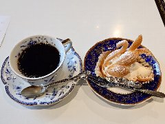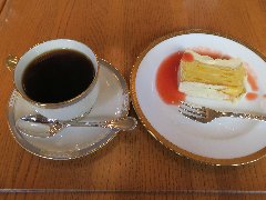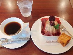 ![]() | 駒込駅東口から2分ほど、さつき通り沿いにあります。2階建ての1階です。青い庇が目印です。1977年の開店だそうです。店内は入口の先はケーキ屋、右の奥がカフェスペース、テーブルが8つありました。昭和感が漂います。店員さんは丁寧です。ブレンドコーヒーとモンブラン(セットで1023円)を注文しました。コーヒーはコクがあって苦めでした。モンブランは栗ペーストがねっとり、昔ながらの味わいでした。美味しかったです。他には、各種ドリンク、ソフトクリーム、トースト、ナポリタンなどがありました。 |