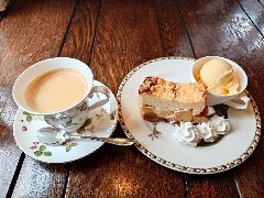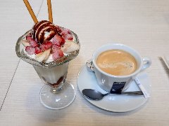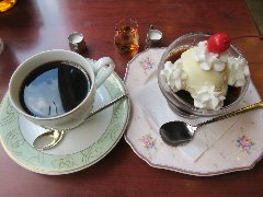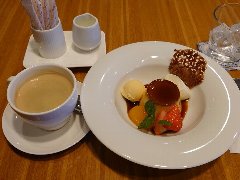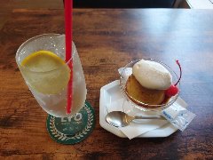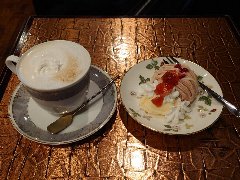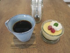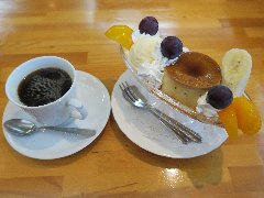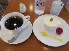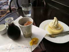 ![]() | 町屋駅から2分ほど、駅の北側のサンバール通り沿いにあります。マンションの1階です。元々は洋食屋だったようです。店内は、テーブルが多数ありました。喫茶エリアと食事エリアが別れていました。ゆったりした席の配置です。音楽は小さめで落ち着いた雰囲気です。ブレンドコーヒー(450円)とプリンアラモード(600円)を注文しました。コーヒーはコクがあって苦めでした。プリンアラモードはアイス、ホイップクリーム、アンズ、イチゴ、焼き菓子が添えられます。プリンは固めで濃厚な味わいでした。美味しかったです。他には、各種ドリンク、季節のフルーツパフェ、ピザトーストなど、食事メニューもがありました。 |