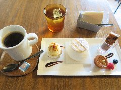 アースガーデン | カフェ | 東京都西多摩郡奥多摩町白丸 | ★★ (2012.9.1) | 普通 | ![]() | 奥多摩、白丸駅の近く、国道411号から多摩川に架かる橋を渡っていくとあります。多摩川の渓谷沿い、自然に囲まれた和風の建物です。店内は木をふんだんに使っています。窓からは緑がよく見えます。さらにテラス席があって、対岸の山や眼下には多摩川を見ることが出来ます。スイーツセット(800円)を食べました。豆乳のプリン、わさびのジェラート、豆腐チーズケーキとコーヒーが付きます。プリン、ケーキはさっぱりしています。美味しいです。食事メニューもたくさんあります。テラス席はかなり気持ちが良かったです。あんだんご、 |