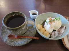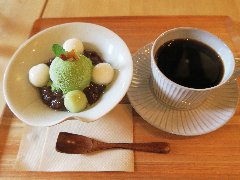 ![]() | 京王八王子駅から3、4分、国道20号の八王子駅入口東の交差点の近くにあります。2階建ての家の1階です。元々は酒屋だそうです。店内は、カウンター席が4つ、テーブルが4つ、外にもテーブルが1つありました。きれいな内装ですがよく見ると天井などは古く、木の梁や土壁などリノベーションした事が分かります。金多屋珈琲(750円)と白玉小豆クリーム(780円、セットで200円引き)を注文しました。コーヒーはハンドドリップで淹れます。白玉小豆クリームは大納言小豆の上の抹茶アイス、手作りの白玉が乗っていました。甘さ控えめ、小豆と抹茶がよく合います。美味しかったです。他には、各種ドリンク、金多屋特製カレー、くま氷、きな粉餅などがありました。ギャラリーや寺子屋にもなるようです。 |