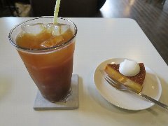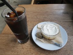 ![]() | 上中里駅から5分ほど、本郷通り沿いにあります。すぐ裏には旧古河庭園があります。割りと地味めな外観です。店内は、1階はテイクアウトのカウンターと厨房、2階にテーブルが8つありました。木がたくさん使われた内装で、椅子や机も古そうで味があります。レトロなラジオから曲が流れていました。窓の外は通り、裏の窓からは庭園の緑が見えます。お洒落な雰囲気です。アイスコーヒー(473円、セットで50円引き)とブランマンジェ(495円)を注文しました。アイスコーヒーはすっきりした味わい、ブランマンジェはアーモンド風味でババロアのようなプルプル感、その上に桃の実と果汁とパッションフルーツが乗っていました。これがとても合います。とても美味しかったです。他には、NYチーズケーキ、バスクチーズケーキ、サンドウィッチ、ホットサンドなどがありました。 |