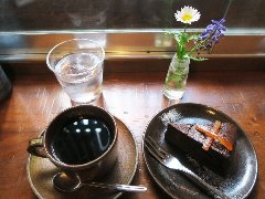 ![]() | 仙川駅から南に3、4分、桐朋学園前の交差点の近くにあります。ビルの2階です。中が見えないのでちょっと入りにくいです。店内は、カウンター席が8つ、テーブルが4つありました。かなり薄暗く本は読めなさそうです。カウンターは大きな一枚板、本棚が多数、壁には絵画、カウンターの棚にはお酒が並び、レコードでジャズを流していました。かなり渋い雰囲気です。何故かカウンターにいくつも置き時計が置いてありました。ブレンド レキュム(深煎り)とガトーショコラ(セットで850)を注文しました。コーヒーはネルドリップで淹れます。濃厚で程よい苦み、美味しかったです。カップが小さいのでのっと飲みたかったです。他には、各種ストレートコーヒー、ミートソース、ホワイトシチュー、珈琲パフェなどがありました。お酒は夜からなのかな?人気があるようでした。 |