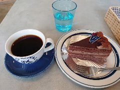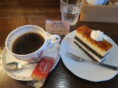 カフェ | 喫茶 | 東京都北区中十条 | ★ (2017.2.11) | 普通 | ![]() | 東十条駅北口から西側に1分、すぐ近くにあります。赤いテントが目印です。店内は、テーブルが多数ありました。ウッディで明るいです。棚にたくさんのコーヒーカップが並んでいます。喫茶店らしい雰囲気の喫茶店です。ブレンドコーヒー(432円)、ベリー&ブラッドオレンシケーキ(セットで432円)を注文しました。飲みやすい美味しいコーヒーです。何層にもなったケーキは酸味が心地よいです。他には、紅茶、トースト、サンドウィッチなどがありました。居心地のいいお店でした。店員さんは気さくな感じで丁寧でした。 |