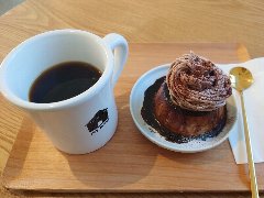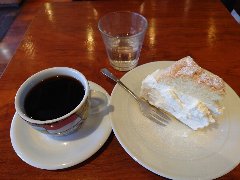 ![]() | 高尾山口駅から4分ほど、国道20号沿い、高尾山入口の交差点の近くにあります。平屋の建物です。ガラス張りで店内が見えます。店内は、テーブルが多数、広々していました。明るくてきれいです。窓からは山の緑が見えます。アンティーク家具が置かれお洒落な雰囲気です。奥に焙煎機がありました。やまびこブレンド(605円)とレモンカスタードパイ(770円)を注文しました。コーヒーは自家焙煎、ハンドドリップで淹れます。コクがありバランスがいいです。レモンカスタードパイは適度な甘さと酸味、外側はサクサク、けっこう大きいかったです。美味しかったです。他には、各種ドリンク、各種ケーキ、焼き菓子、ソフトクリームなどがありました。豆売りもしています。 |