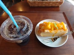 ![]() | 立川北駅から北に5、6分、グリーンスプリングスという商業施設内の2階、広いテラスにあります。オープンな外観です。お店の周りのテラスに長テーブルが2つ、テーブルが2つありました。ビルの2階ですが緑が豊富です。店内に波動スピーカーがあるようです。オーガニックブレンドコーヒーLアイス(460円)とチーズタルト(280円)を注文しました。セルフサービスです。コーヒーはスッキリした味わい、タルトは中はしっとり外はサクサクです。小さいですが十分です。美味しかったです。他には、各種ドリンク、自家製レモネード、お酒、ソーセージパイ、チュロスなどがありました。開放感があっていいです。 |