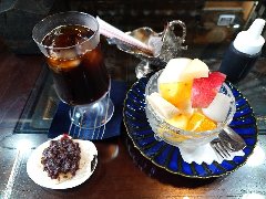 ![]() | 十条駅南口から3、4分、都道455号沿いにあります。2階建ての建物です。黒壁の外観、庇はちょっとくたびれた感じです。店内は、テーブルが11ありました。縦に長く落ち着いた雰囲気です。割りと広いですがマスターのワンオペでした。アイスコーヒー(600円)とクリームあんみつ(850円)を注文しました。コーヒーはすっきりした味わいでした。あんみつには、黒蜜と昆布茶が付きます。アイス、バナナ、パイン、みかん、白桃、求肥、アンコ、赤豆、寒天が入っていました。盛りだくさんです。昆布茶がいいアクセントになります。それとは別に食後に昆布茶がサービスされました。美味しかったです。他には、各種ドリンク、サンドイッチ、トースト、生パスタ、自家製カレーなどがありました。のんびり出来ました。 |