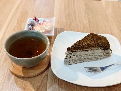 ![]() | 三ノ輪橋駅から1分、ジョイフル三の輪商店街にあります。店頭でお茶を焙じています。店内は、テーブルが4つ、外にテーブルが1つありました。割りときれいです。ほうじ茶(500円)とほうじ茶ミルクレープ(400円)を注文しました。お茶菓子が付きます。ほうじ茶は香ばしいです。飲み終わると2杯目を出してくれます。ケーキはほうじ茶のクリームたっぷりですが甘さは控えめでさっぱりしています。ミルクレープの食感もいいです。美味しかったです。他には、各種ドリンク、自家製ほうじ茶ゼリー、自家製みかんゼリーなどがありました。 |