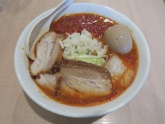 ![]() | 岩波駅から2kmほど、県道394号沿いにあります。3階建ての建物です。赤い看板が目立っていました。店内は、コの字のカウンター席が9つ,テーブルが3つ、小上がりが2つありました。ラーメン屋っぽくはないです。黄金チーズトマト麺(1000円)を注文しました。バジル、プチトマト、ほうれん草、フライドオニオン、テーズが乗っていました。麺はやや太めの平打ちでした。スープは、トマトの酸味と野菜の旨味に溶けたチーズとオリーブオイルで濃厚です。これはラーメンというよりイタリアンです。美味しかったです。他には、ボンゴレ麺、ペスカトーレ麺、オニグラ麺などがありました。 |