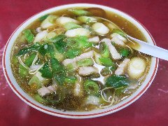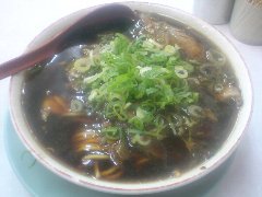 新福菜館 | 中華 | 京都府京都市下京区東塩小路向畑町 | ★ (2012.9.20) | 普通 | ![]() | 京都駅中央口から5分ほどの近さ、高倉塩小路の交差点の近くにあります。昼時で店の外に若干の行列が出来ていました。店に入ると店員が威勢よく「おおきに〜」と言っています。さすが京都だ〜。店内にはカウンター席が3つ、テーブルが6つ、2階席もあるようです。混んでいて相席でした。中華そば並(650円)とチャーハン(500円)を食べました。具はシンプルで多目の刻み九条ネギとチャーシューのみです。麺は若干太めのストレートです。スープは鶏がらトンコツ、かなり黒くて香ばしいですがちょっとしょっぱいですが、癖になるような気もします。チャーハンも味が濃いですが美味しいです。お店を出るときには「おおきに〜」と言ってくれました。人気店のようです。 |