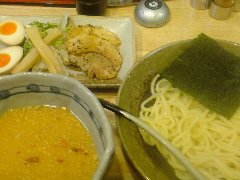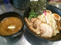 三河開化亭 | ラーメン | 愛知県豊橋市花田町西宿 | ★ (2012.4.9) | 普通 | ![]() | 豊橋駅の駅ビル、カルミアの中にあります。カウンター席が6つ、テーブルが多数あります。メニューがたくさんありました。、スペシャルつけ麺から、こってり味噌つけ麺(900円)を食べました。もやし、水菜、メンマ、味玉、チャーシュー3が別皿に盛られています。海苔が麺の上に乗っています。麺は太麺ですが柔らかいです。つけ汁は味噌ベースでトンコツ魚介、ゴマ、ニンニク、とうがらしが入っていました。美味しいです。スープ割りできます。とんてき等もありました。 |