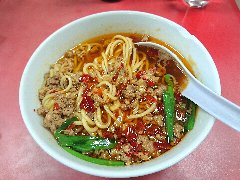 ![]() | 矢場町駅から3分ほど、若宮大通沿いの矢場町の交差点の近くにあります。3階建ての大きな建物です。店内は、各階にテーブルが多数ありました。とても広いですが、凄く混んでいて待ち客が多数いました。特に若い客が多かったです。ほぼ飲み屋のような感じになっていました。相席になりました。水が酒の瓶に入っていました。台湾ラーメン(680円)を注文しました。ニラ、モヤシ、挽き肉、唐辛子が入っていました。麺は中細のストレートです。スープは鶏ガラ、見るからに辛そうですが実際も辛いです。旨味があって美味しいけど辛さが勝ちます。丼は小さめです。この台湾ラーメンは名古屋生まれで台湾には無いそうです。他には、スーラーメン、焼きビーフン、冷メン、各種中華料理などがありました。 |