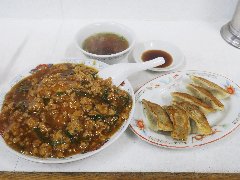 ![]() | 三島広小路駅から2分ほど、県道22号沿いにあります。2階建ての合ってモノです。白い暖簾が掛かっていました。店内は、テーブル席が4つ、円卓が1つありました。かなりレトロな雰囲気です。古いメニューと新しい派手なメニューが貼られていました。ブルースリーのポスターが飾られていました。ミックス餃子定食(850円)を注文しました。3種類(肉、エビ、チーズ)の餃子から2つ選びます。エビと肉にしました。ライス、スープ、ナムルっぽい野菜、冷奴が付きます。餃子は3つずつ、どちらもけっこう大きいです。エビ餃子には大きめのエビが入っていました。マヨダレもいけます。肉餃子は肉と野菜がたっぷりでした。美味しかったです。他には、ラーメン、揚げワンタン、揚げ焼売、ホルモンスタミナ焼きなどがありました。 |