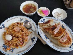 ![]() | 富士宮駅北口から4kmほど、県道397号からちょっと路地に入ったところにあります。眺めのいい場所です。2階建ての建物です。らんぽうと読みます。店内は、カウンター席が4つ、テーブルが3つ、座敷もありました。カウンターの色がピンクっぽいです。エビチャーハン(930円)とギョーザ(480円)を注文しました。チャーハンはパラパラ系、大きめなエビなど具だくさんでした。餃子はしっとり系、割りと大きめででした。どちらも味がしっかりめでした。美味しかったです。他には、ラーメン、五目ヤキソバ、マーボー定食などがありました。 |