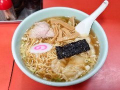 大衆食堂 | ラーメン/定食 | 山梨県韮崎市富士見 | ★ (2018.8.10) | 普通 | ![]() | 韮崎駅から5、6分、駅の西の方にあります。店内は、カウンター席が5つ、小あがりのテーブルが3つ、座敷にテーブルが3つありました。壁には似顔絵が大量に貼られていました。夜は居酒屋といった雰囲気です。チャーシューメン(650円)を注文しました。海苔、豚バラチャーシュー、刻みネギが入っていました。とてもシンプルです。麺は普通の太さで縮れていました。スープは、鶏ガラ醤油、あっさりとしていて懐かしい味です。美味しいです。他には、タンメン、カレーラーメン、各種定食、カツ丼などがありました。 |