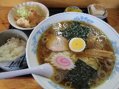 ねぎぼーず | ラーメン | 岩手県盛岡市盛岡駅前北通 | ★ (2011.9.13) | 普通 | ![]() | 盛岡駅の東口からちょっとだけ北方向に歩いた辺りにあります。店内は中華料理店風でカウンターが7席、テーブルが3つ、小上がりにテーブルが2つありました。メニューが多く壁中に貼ってあります。多すぎて困るくらいです。冷やしとりそば醤油味の餃子セット(1050円)を食べました。とりそばにはパイコー、レタス、キャベツ、レモンが乗っていました。面は細麺で縮れています。スープは冷たくて濃い醤油味です。かなりボリュームがあります。餃子も美味しかったです。 |