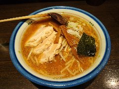 ![]() | 新庄駅西口から10分強、金沢通り沿いにあります。本店があるかは不明です。2階建ての建物です。店内は、カウンター席が4つ、テーブルが2つ、小あがりのテーブルが3つありました。もつラーメン(700円)を注文しました。鶏モツ、メンマ、刻みネギが入っていました。麺は中太でやや縮れていました。スープは鶏出汁、すっきりとして旨味を感じます。鶏モツはキンカン、皮、砂肝、レバーなどいろいろな部位が入っていてコリコリしています。とても美味しかったです。他には、メンマラーメン、ぬるまラーメン、カレー中華などがありました。 |