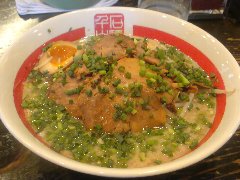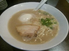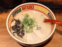 ![]() | 秋葉原駅電気街北口から5、6分、大通りと秋葉原ジャンク通りの間にあります。青い看板とオレンジ色の暖簾がユニークです。閉店間際でしたが行列がありました。店内はカウンターが12、テーブルが2つありました。混んでいたせいもありますが狭い感じがしました。九州じゃんがら(890円)を注文しました。チャーシュー、きくらげ、刻みネギが入っていました。麺は細めのストレートです。スープは白濁した豚骨、マイルドでクセがなく見た目よりさっぱりしていました。美味しかったです。他には、ぼんしゃん、こぼんしゃん、じゃんがらみそなどがありました。 |