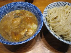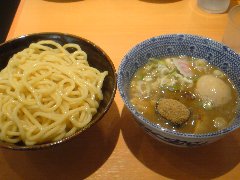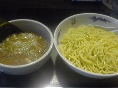 つけめんTETSU | ラーメン | 東京都港区高輪 | ★ (2009.7.18) | 小高 | 無し | 品川駅の近く、「品達」内にあります。店内はカウンターとテーブルがありますが、外から直接座れる屋台のようなカウンター席もあります。つけめん(750円)を食べました。チャーシュー、メンマ、ネギ、魚粉が入っていました。麺は中太、スープは魚介系でトロトロしてて濃厚です。美味しいです。割りスープはポットに入っています。スープが温くなった時は焼き石を丼に入れるサービスがあるようです。だけどこの具ではちょっと高い気がするなあ。 |