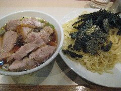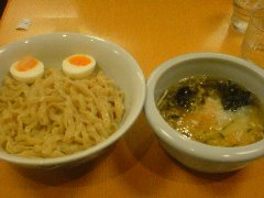 六厘舎TOKYO | ラーメン | 東京都千代田区丸の内 | ★★ (2010.6.11) | 小高 | ![]() | 東京駅の八重洲口の地下街、一番街にある東京ラーメンストリート内にあります。大崎にある本店は長い行列が出来る超人気店です。午後6時に行くと20人の行列が出来ていました。 30分程待って店内に入れました。カウンター席が10、テーブルが5つあります。活気があるきれいなお店です。味玉つけめん(950円)を食べました。メンマ、角切りのチャーシュー、ネギ、のり、魚粉、味玉が入っていました。麺は太麺で縮れています。スープはとんこつ鶏がら+魚介の濃厚Wスープです。さすがに美味しいです。スープ割りもできます。でもちょっと高いと感じました。店頭でみやげ用つけ麺も売っています。 |