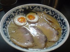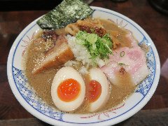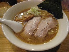 麺匠 克味 | ラーメン | 東京都新宿区住吉町 | ★★ (2013.9.27) | 普通 | ![]() | 曙橋駅のすぐ近くにあります。店内はカウンター席が6つ、テーブル席が3つありました。妙に座り心地がいい椅子です。特製にぼにぼ中華(980円)を食べました。チャーシュー(3枚、大きくて角煮みたいに柔らかいです)、長ネギ、刻みネギ、味玉、海苔、メンマが入っていました。麺は太麺です。スープは豚骨と鰯の煮干のダブルスープです。ひき肉と魚粉が入っていました。美味しいです。かなりのボリュームです。その他、超ド級濃厚トンコツラーメン、トンコツ合せラーメン、濃厚味噌ラーメンなどがありました。 |
