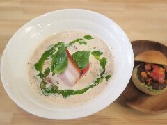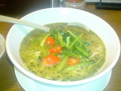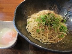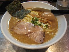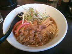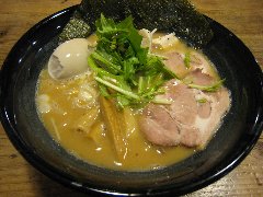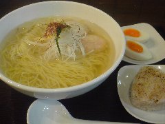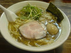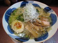 粋な一生 | ラーメン | 東京都台東区台東 | ★★ (2011.7.26) | 普通 | ![]() | 秋葉原駅の北東方面、国道4号を越えた路地にあります。きれいなお店です。カウンターが10席、テーブルが2つありました。店員さんはとても丁寧です。メニューには醤油、塩、味噌があり、それぞれ動物系清湯、魚介、白湯の3種類のスープをブレンドしているようです。塩冷製麺(800円)を食べました。ネギ、かいわれ、トマト、もやしナムル、めんま、鶏チャーシュー、スープのゼリー、バジルが入っていました。麺の太さは普通で縮れています。スープは冷たくて、甘しょっぱいです。暑い夏にはいいですね。美味しいです。バジルの香りがいいです。次は普通のラーメンも食べてみたいです。 |