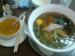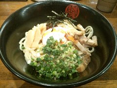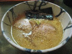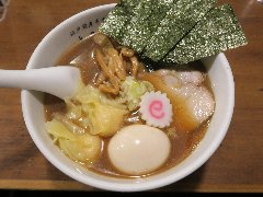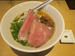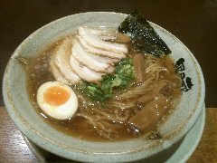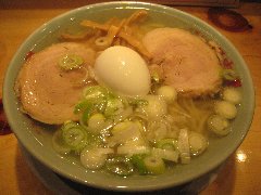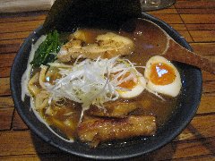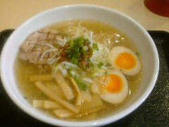 麺屋 | ラーメン | 東京都新宿区矢来町 | ★★ (2011.9.30) | 普通 | ![]() | 東京メトロ東西線、神楽坂駅の近くにあります。きれいな店内です。カウンター席が5、テーブル大が3つ、テーブル小が2つありました。味玉らーめん(塩)(800円)を食べました。焼いたチャーシュー、揚げネギ、アサツキ、ネギ、めんま、味玉が入っていました。チャーシューが美味しいです。麺は普通似太さでストレーです。スープはあっさりしたきれいな色をしています。美味しいです。ランチタイムは大盛りサービスです。 |