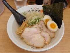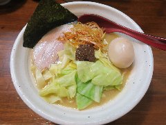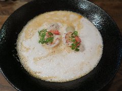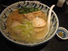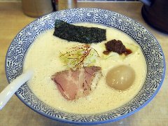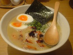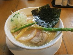 ![]() | 浅草橋駅東口から3分ほど、駅から北の方に進むとあります。ビルの1階です。店内は、カウンター席が9つ、テーブルが1つありました。きれいなお店です。特製豚白湯(880円)を注文しました。海苔、オクラ、アスパラ、ヤングコーン、味玉、チャーシュー、メンマ、白髪ネギが入っていました。チャーシューはスペイン産の豚を使っているそうです。麺は細めのストレートです。スープは豚骨、クリーミーでくせがないです。かえしには昆布、浅利、干し椎茸、イカなどで出汁を取るそうです。見た目が豚骨っぽくないさわやかさです。美味しいです。とても丁寧さを感じました。他には、(限定)坦々麺、15分かかるつけ麺などがありました。 |