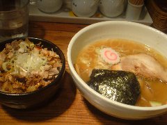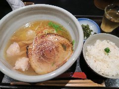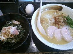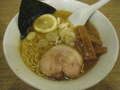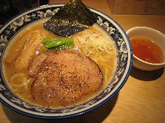 竹井幸彦 | ラーメン | 東京都中央区新川 | ★★ (2013.9.7) | 普通 | ![]() | 八丁堀駅から2、3分のところにあります。変わった店名ですが、創業者2人の名前を組み合わせたものらしいです。ジャンル的には居酒屋なのですが、ラーメンが食べられます。店内はカウンター席は5つ、テーブルが多数あります。鶏しおそば(730円)を食べました。オーダーから料理が出てくるまでとても早いです。鶏のチャーシュー、刻みネギ、メンマが入っていました。麺は細麺、黄色い鶏のスープで少し濁っています。優しい味で美味しいです。昼はライスとキムチが無料です。 |