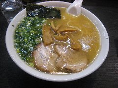 よってこや | ラーメン | 東京都港区三田 | ★ (2011.12.1) | 普通 | ![]() | 恵比寿駅から西方面へ向かって3分ほど歩くとあります。派手な看板が目立ちます。店内にはコの字型のカウンター13席とテーブル席が3つあります。人気だと言うジェノバとん塩麺(880円)を食べました。青菜、ミニトマト、バジルが入っていました。麺の太さは普通で縮れています。スープは緑っぽい色をしています。豚骨スープに塩ダレバジルペーストが入っているようです。イタリア風?でとても変わっていますが美味しいです。ボリュームはないです。 |