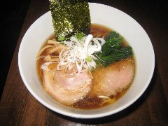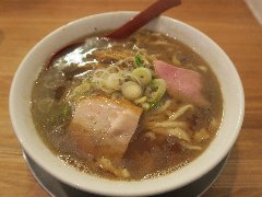 神田 磯野 | ラーメン | 東京都千代田区神田須田町 | ★★★ (2013.1.19) | 普通 | ![]() | 淡路町駅、神田駅、秋葉原駅の間ですが淡路町が近いです。靖国通り沿いにあります。くの字のカウンター席が8つ、その向こうの厨房に店主が1人だけの狭い店です。開店後間もなく満席になりました。店内には鰹の匂いが漂います。醤油らーめん(780円)+味たま(150円)を食べました。チャーシュー(柔らかいです)、メンマ、刻みネギ、味玉(名古屋コーチンの卵)、岩のりが入っていました。麺は細めです。少し濁った醤油スープには油が浮いています。鶏と魚介の出汁で優しい味です。飲み干したくなる美味しいスープです。人気店です。 |