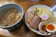 ![]() | 東武線の浅草駅正面改札口から3分ほど、仲見世の近く、伝法院通り沿いにあります。2階建ての1階です。和風な外観、屋根の上に歌舞伎役者?が座っています。店内は、カウンター席が7つ、2階にはテーブルがあります。壁には昔の浅草の写真が飾られていました。特製ざるらーめん(1050円)を注文しました。麺は中細の縮れていました。麺の上に刻み海苔、チャーシュー、味玉、めんま、スープの中にメンマ、チャーシュー、三つ葉、刻みネギなどが入っていました。別皿で海老あられが付きます。チャーシューはほろほろ、味玉は双子です。スープは動物と鰹出汁、やや酸味がありました。美味しかったです。他には、らーめん、梅しおらーめん、魚介濃厚つけ麺などがありました。 |