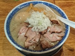 塩生姜らー麺専門店 | ラーメン | 東京都千代田区内神田 | ★ (2018.3.16) | 普通 | ![]() | 神田駅西口から3西に分ほど、外堀通りを渡った辺りにあります。狭い階段を降りた地下にあります。扉は無く中が見えます。店内は、カウンター席が7つ、狭いです。薄暗いです。塩生姜らー麺肉増し(1000円)を注文しました。鶏チャーシュー、青菜、かいわれ、刻みネギ、が入っていました、麺は普通の太さのストレートです。スープは、鶏清湯におろし生姜が入っています。丼の底にはたくさん生姜が沈んでいました。鶏チャーシューはぷりぷりです。美味しいです。寒い日には暖まっていいですね。身体にも良さそう。他には、塩生姜らー麺と味玉入り、肉玉入りがありました。 |