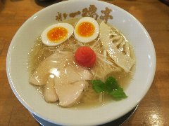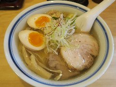 ![]() | 人形町駅から2分ほど、人形町の交差点から西に進み路地に入るとあります。3階建ての1階、縦格子の外観です。店内は、カウンター席が8つ、テーブルが2つありました。本店は旭川にあるようです。特のせ塩らーめん(1030円)を注文しました。海苔、チャーシュー、メンマ、温玉、刻みネギが入っていました。麺は細めでやや縮れていました。スープは、鶏と魚介の出汁でしょうか、濁りなく透き通っています。シンプルなだけにややしょっぱさを感じました。無料のとろろ昆布を入れると出汁が出ます。美味しかったです。他には、塩梅らーめん、醤油らーめん、味噌らーめんなどがありました。 |