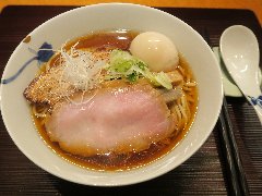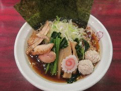 生粋 花のれん | ラーメン | 東京都文京区大塚 | ★★ (2017.1.3) | 普通 | ![]() | 茗荷谷駅から新大塚方面に3分ほど、春日通り沿いにあります。板壁で若干和風な外観です。店内は、カウンター席が6つ、テーブルが3つありました。こじんまりしています。ウッディな内装、きれいでお洒落です。厨房では女性の方が麺を茹でていました。旨み鶏だし特製醤油(1000円)を注文しました。チャーシュー(豚バラ2枚、低温調理ロース2枚)、味玉、メンマ、刻みネギ、揚げネギが入っていました。麺は北海道産小麦を使用、普通の太さでやや縮れていました。スープは、シャモロックなどの地鶏、香味野菜、アサリ、シジミなどの出汁に、3種類の再仕込み醤油と生醤油から作るタレ、きれいな色で少し甘めです。無化調で、素材に拘ったラーメンです。美味しいです。他には、塩(ラーメン)、炊き込みご飯などがありました。店員さんは丁寧でした。 |