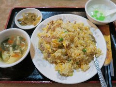 ![]() | 稲荷町駅から6、7分、入谷駅、上野駅からも同じくらい、かっぱ橋本通りから少し路地に入ったところにあります。ビルの1階、客席は2階にあります。昭和33年の創業だそうです。店内は、テーブルが5つ、円卓が2つありました。きれいでシンプルな内装、赤いテーブルです。叉焼炒飯(990円)と餃子(550円)を注文しました。入店時に調理に時間が掛かると言われましたが、まあまあ掛かりました。スープとザーサイが付きます。チャーハンはかなりパラパラ、玉子、グリーンピース、チャーシュー、ネギなどが入っていました。量は多めです。餃子はしっとりタイプ、あっさり薄味でした。美味しかったです。全体的に塩分控えめです。そしてやや高めです。他には、上海風マーボー麺、五目うま煮ヤキソバ、美味豚のスブタなどがありました。 |