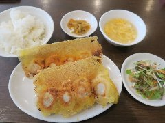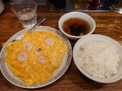 ![]() | 東銀座駅から2分ほど、銀座東二丁目の交差点から東に進むとあります。ビルの1階です。大正時代の創業だそうです。レトロな看板が出ていました。店内は、カウンター席が5つ,テーブルが5つありました。大正レトロ風な内装、昭和歌謡が流れていました。エビ玉定食(950円)を注文しました。ライスとスープが付きます。エビ玉は、トロトロ玉子焼きに大きめのエビのむき身が入っていました。中華出汁が効いていて優しい味でした。疲れてる時によさそうです。美味しかったです。他には、中華そば、レバーにら炒め定食、マーボ豆腐定食などがありました。 |
