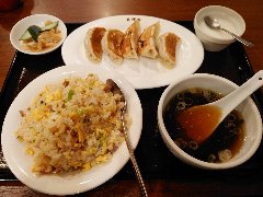 ![]() | 神保町駅から2分ほど、靖国通りから狭い路地に入った辺りにあります。2階建ての建物です。赤い壁で独特な外観です。店内はテーブルが多数、2階もあるようです。明るいです。黒豚餃子の半チャーハンセット(1080円)を注文しました。かなり大きな餃子が6個、焼き目がきれいです。中は具だくさんでキャベツやニラと黒豚挽肉が入っていました。皮はもっちりしていました。中からスープが溢れます。醤油でも酢でも合います。チャーハンはパラパラ系でした。美味しかったです。他には、元祖野菜餃子、水餃子、海老にら餃子、各種中華料理がありました。天鴻餃子房という系列店がいつくかあるようです。 |