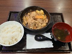 ![]() | 湯島駅から1分ほど、春日通り沿い、天神下の交差点の近くにあります。3階建ての建物の1階です。オレンジ色の看板が目立ちます。店内は、テーブルが4つ、牛丼屋風でした。土鍋鶏煮込み定食(骨なし)(980円)を注文しました。中国山東省の伝統料理だそうです。ご飯はおかわりできます。鶏煮込みは熱々の土鍋で出されます。人参、じゃがいも、しいたけ、生姜、鶏肉が入っていました。鶏肉は柔らかく具沢山です。シンプルな甘じょっぱい味付けで肉じゃがのような味わいでした。美味しかったです。他には、土鍋豚足煮込み定食、海鮮粥煮込み定食、土鍋魚煮込み定食などがありました。 |