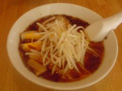 パンダ | 中華 | 東京都大田区蒲田 | ★ (2014.3.7) | 普通 | ![]() | 京急蒲田駅のアーケード(あすと)の中にあります。赤い看板とパンダのキャラクターが目立ちます。店内は、カウンター席が7つ、テーブル席が多数あります。タンタンメン(大盛)(560円+100円)を食べました。味玉(半)、ほうれん草、チャーシュー(美味しい)、刻みネギ、刻みザーサイ、白ゴマが入っていました。麺は縮れ柔らかめです。スープは、ゴマが香りますが以外と薄味です。そして辛くもありません。中国四川省のごまだれの味なのだそうです。その他、チースータンタンメン、サイタンタンメンなどがあります。中華料理もあります。 |
