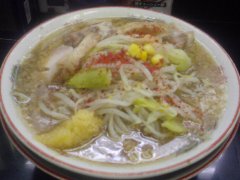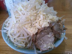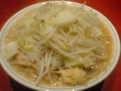 らーめん | ラーメン | 東京都大田区新蒲田 | ★ (2012.5.20) | 普通 | 無し | 環八沿いにあります。まるはちと読みます。駅で言えば多摩川線の矢口渡です。ガラス張りで環八からは丸見えです。店内はカウンターのみで10席あります。二郎インスパイア系のお店です。野菜増し、背油増し、ニンニク増し、マー油増しは無料です。らーめん(700円)+味玉(100円)+野菜増しを食べました。もやし、キャベツ、味玉、チャーシューが乗っていました。麺は太麺、スープはとんこつ系で背油が浮いています。ボリューム満点で美味しいです。カウンターに魔法使いジャンという調味量が置いてあり、入れると味が変わってまた美味しいです。つけ麺もあるようです。店員さんが丁寧でした。 |