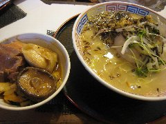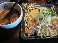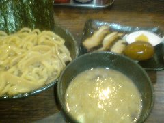 Zoot | ラーメン | 東京都大田区西蒲田 | ★ (2009.8.8) | 小高 | 無し | 蒲田駅西口から正面のバス通りを少し歩いたところにあります。店内はお洒落な感じでジャズが流れていました。広さに余裕ありますがカウンターのみです。味玉つけめん(800円)を食べました。具はメンマ、チャーシュー、ネギ、ゴマ、味玉でした。麺は透き通った感じで太目で縮れています。スープはトンコツと魚介のブレンド、濃い味ですが美味しかったです。スープ割りするとトンコツ味が強くなります。ちょっと高いかな。 |