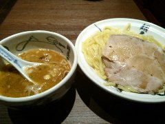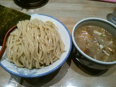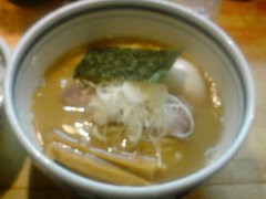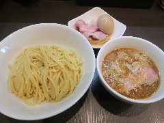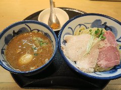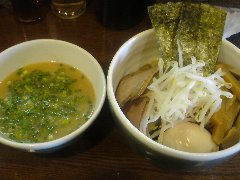 麺屋 | ラーメン | 東京都世田谷区玉川 | ★ (2015.4.25) | 普通 | ![]() | 二子玉川駅から2、3分、玉川通りを渡っていくとあります。店内は、カウンター席が8つ、テーブルが1つありました。間接照明やスポットライトなどちょっとお洒落感、きれいなお店です。つけ麺(750円)を注文しました。麺側に、海苔、メンマ、ほうれん草、チャーシュー、スープ側に刻みねぎが入っていました。麺は太麺ストレートです。スープは動物魚介W系で、豚骨、鶏ガラ、香味野菜と煮干で出汁を取っているそうです。その他、肉汁つけ麺、中華そばなどがありました。店員さんは丁寧でした。 |