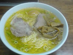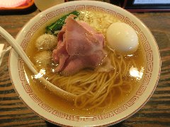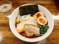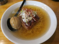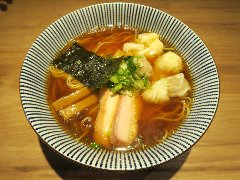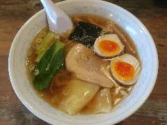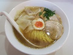![]() | 駒沢大学駅から5分ほど、環七の上馬の交差点の近くにあります。マンションの1階です。大きな垂れ幕が出ていました。店内は、カウンター席が6つ、テーブルが3つありました。やや薄暗いです。ご主人が1人で切り盛りしていました。玉子セット麺(800円)+ワンタン(150円)を注文しました。海苔、メンマ、チャーシュー、チンゲン菜、味玉、ワンタン、刻みネギが入っていました。麺は細めで縮れていました。八ヶ岳の湧水で作るそうです。スープは鶏出汁、透き通ったきれいな色でシンプルで優しい味でした。締めの一杯としてよさそうです。美味しかったです。他には、湯麺(とんみん)、とりそばなどがありました。 |