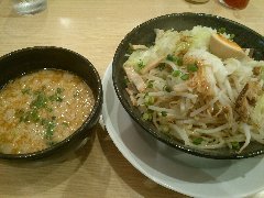 ちりめん亭 | ラーメン | 東京都大田区蒲田 | ★ (2013.6.20) | 普通 | ![]() | 蒲田駅東口から京急蒲田方面に続く商店街にあります。コの字型のカウンター席が13あります。牛丼屋のような雰囲気です。濃厚野菜つけ麺(790円)を食べました。キャベツ、もやし、味玉(半)、細切りのチャーシュー(少ない)、あさつきが麺の上に乗っていました。麺は太麺です。多加水完熟麺の極太でもちもち麺と書いてありましたが、そこまで極太くなかったです。スープは動物と魚介のWスープ、少し酸味があります。大量の背油が浮いています。美味しくてボリュームがあります。チャーシューがもう少し大きいといいですね。 |